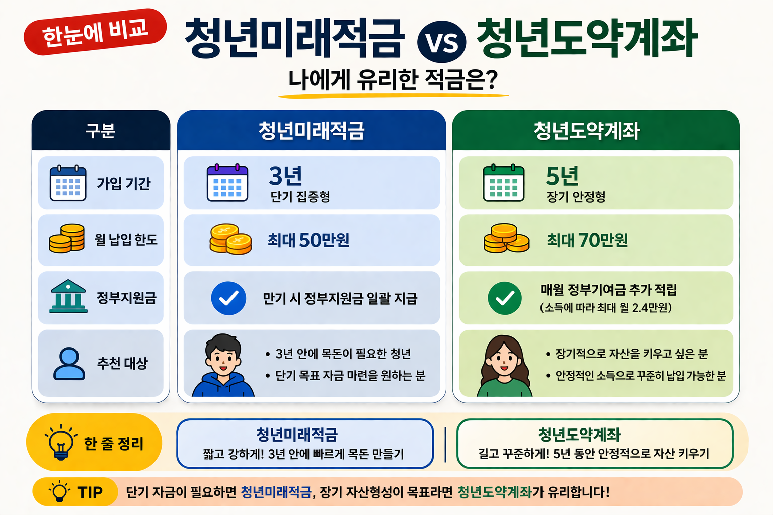 5년이라는 긴 호흡으로 큰돈을 만들 것인지, 3년이라는 빠른 회전율로 실속을 챙길 것인지 결정해야 합니다. 오늘 이 글에서는 두 상품의 자격 조건부터 예상 수령액, 장단점까지 완벽하게 비교하여 여러분의 선택을 도와드리겠습니다.