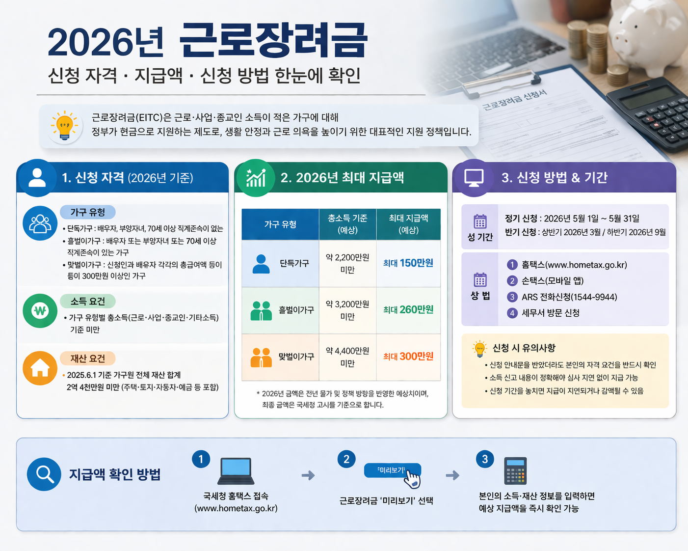 1. 근로장려금 신청 자격 (2026 기준 핵심)